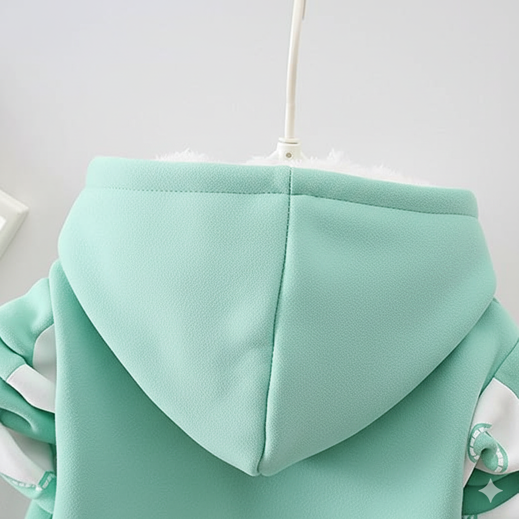 This adorable baby girl’s outfit is perfect for keeping her cozy and stylish all winter long. The set includes a blue hoodie with a white floral print and a matching pair of sweatpants.