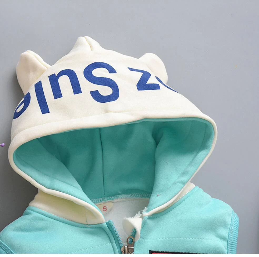 This adorable 3-piece baby boy’s outfit includes a hooded sweatshirt, quilted vest, and fleece pants, all featuring cute bear designs. Perfect for everyday wear or special occasions. Available in various sizes.