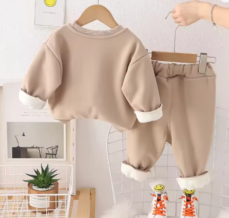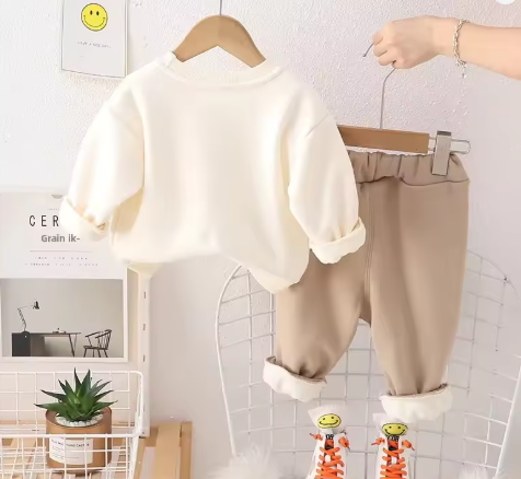 Dress your little one in playful comfort with this trendy 2-piece kids outfit featuring a cheerful smiley design. Made from soft, breathable fabric, this set includes a classic cream sweatshirt and matching tan jogger pants — perfect for everyday wear, playtime, or casual outings.