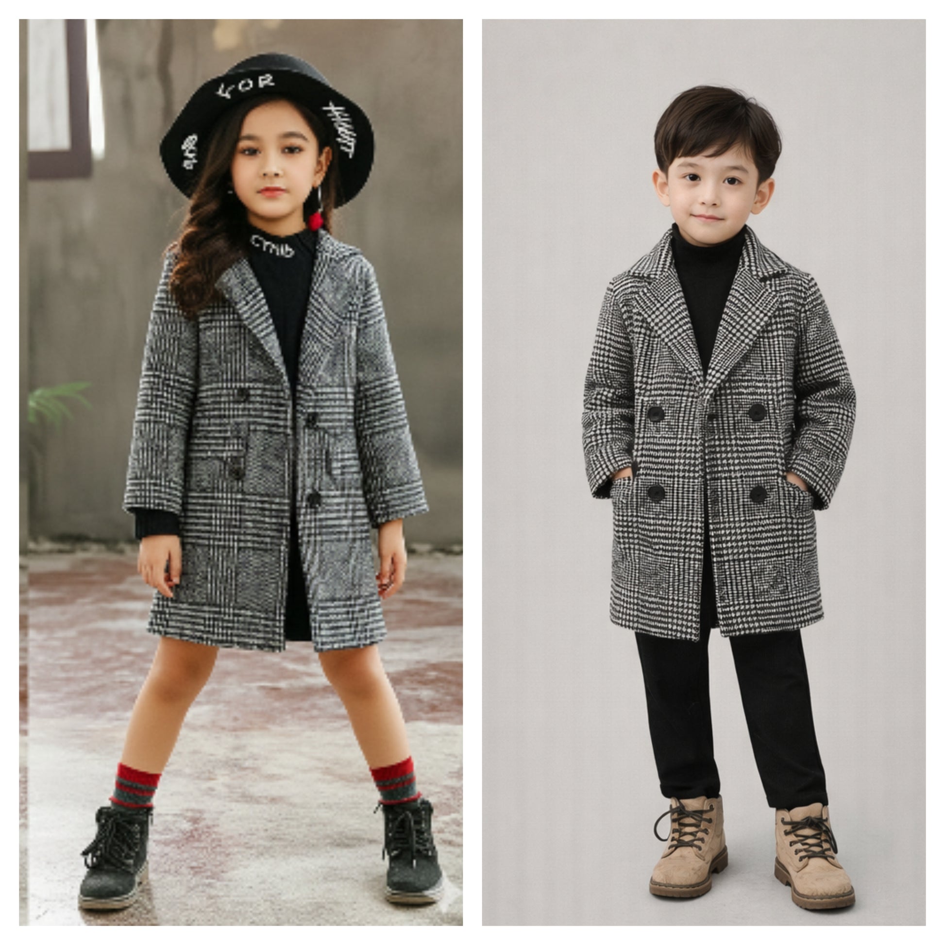 Give your little fashionista a chic winter look with this Classic Checkered Long Coat. Designed with a timeless black-and-white plaid pattern, this coat brings elegance, warmth, and comfort all in one. Its soft, cozy fabric keeps your child snug during cold days, while the long tailored fit adds a trendy, sophisticated touch. Perfect for outings, parties, winter holidays, and everyday wear—this coat is a must-have wardrobe
