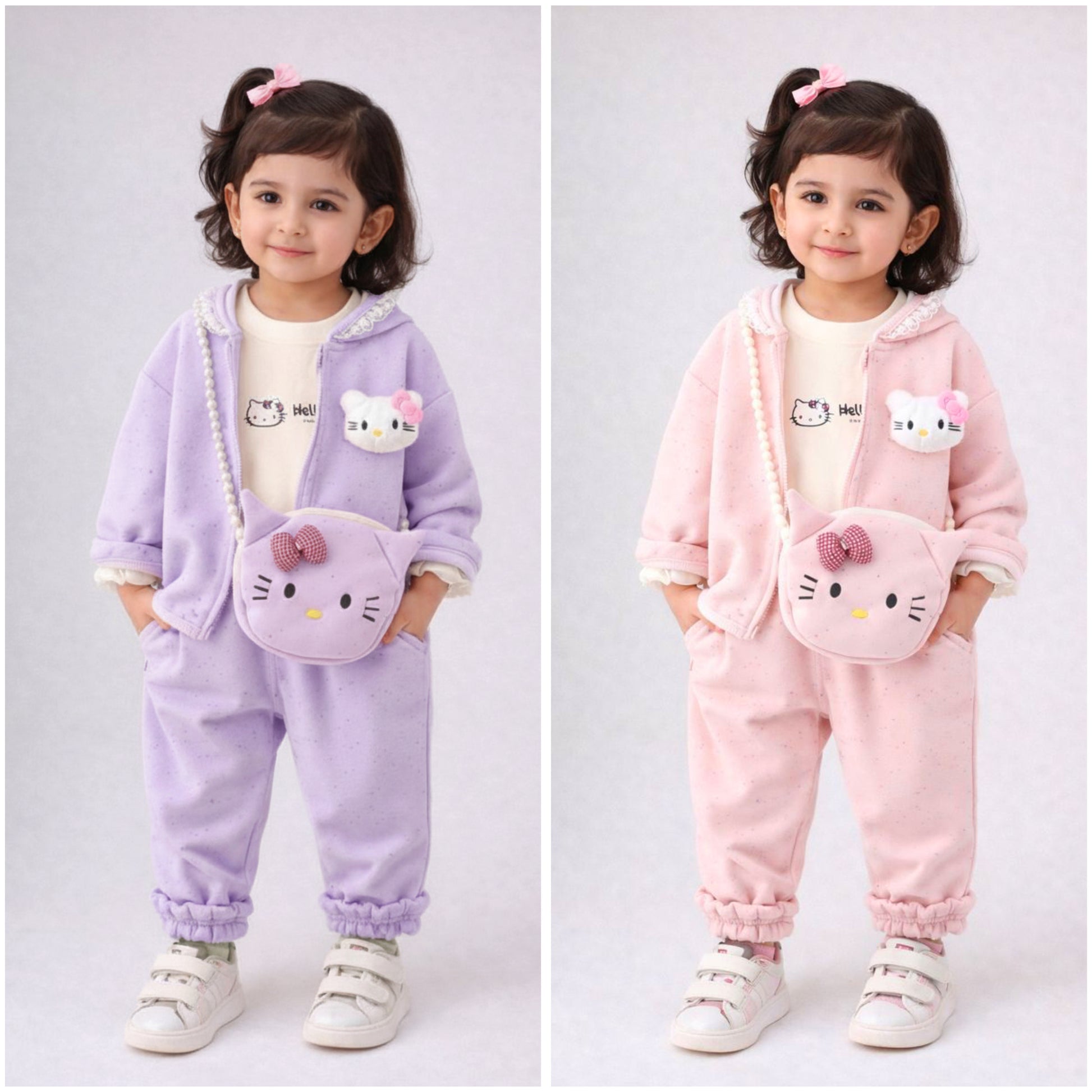 "Add a touch of cuteness to her wardrobe with the Eboo Girls Embroidered Sweatshirt Set! 🧸👕 This 4-piece set includes: