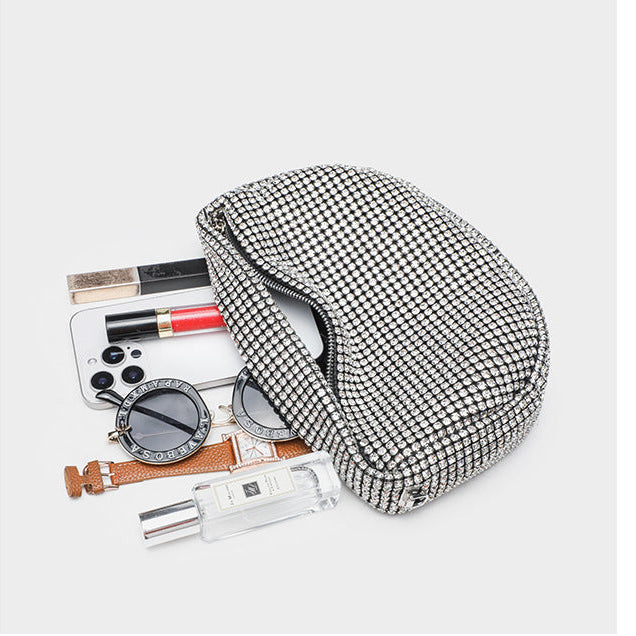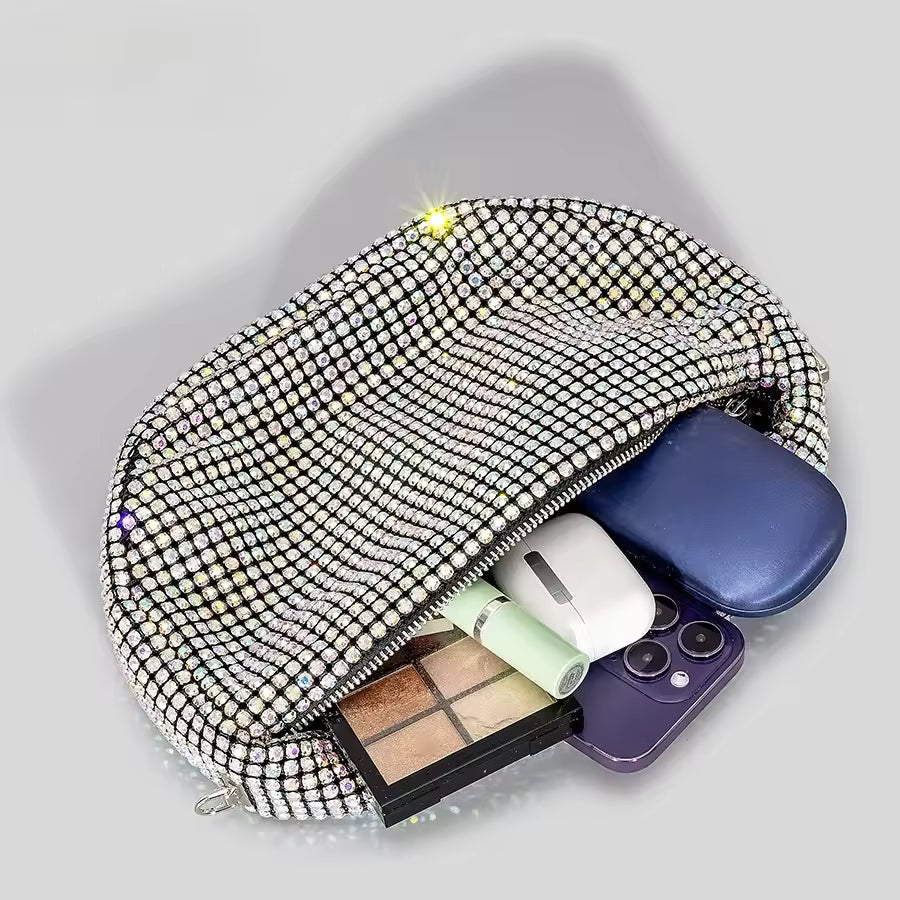 Add instant glamour to any outfit with this stunning luxury rhinestone crossbody bag from Eboo. Covered in dazzling crystals, it catches the light beautifully, making it the perfect accessory for parties, weddings, evenings out, and special events. The compact yet stylish silhouette is designed to hold your essentials — phone, keys, cards, and makeup — while elevating your overall look with radiant sparkle.
