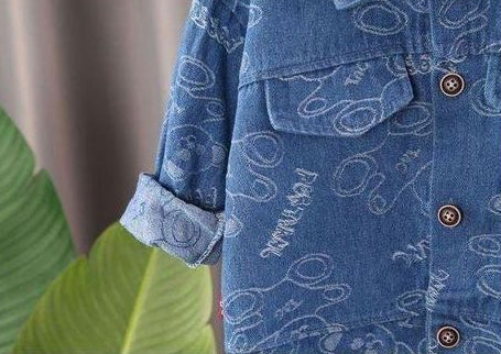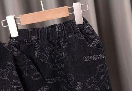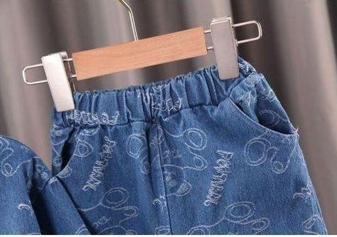 Get your little trendsetter ready for the streets with this cool graphic denim duo. This two-piece set features a modern, wash with a unique all-over bear and text print. The outfit includes a bomber-style denim jacket with an elastic hem for a contemporary fit, alongside matching jogger pants designed for comfort and style. It's an instant outfit for a cool, casual look.