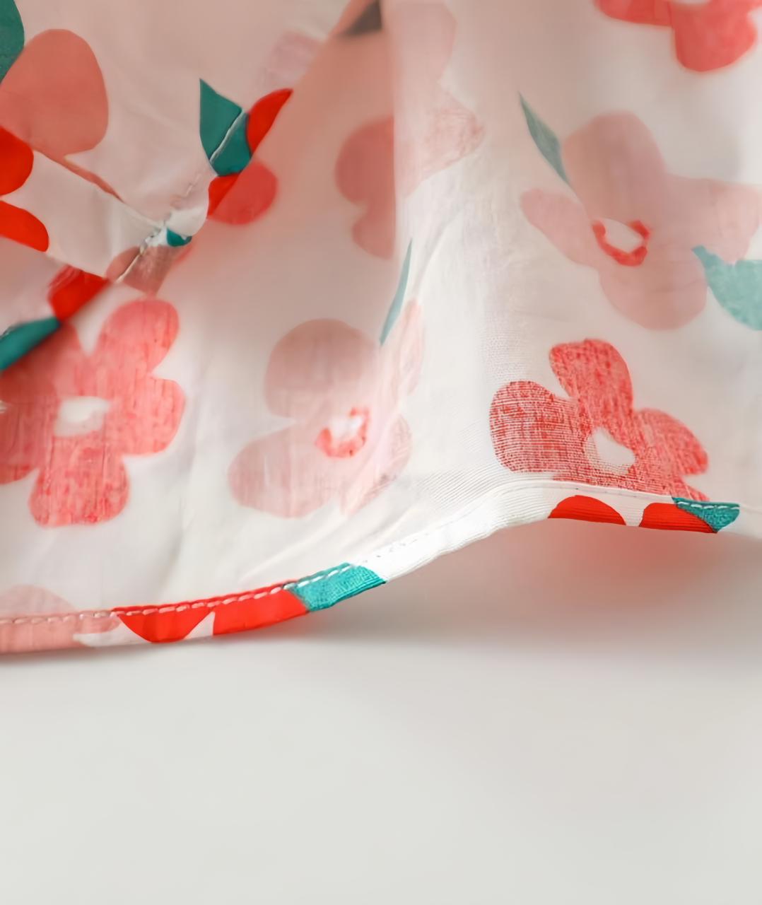Get your little girl ready for a day of fun and adventure in this adorable floral print ruffle hem dress! Made with soft and comfortable materials, this dress is perfect for everyday wear, special occasions, or just for twirling around in the backyard.